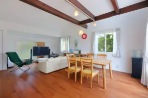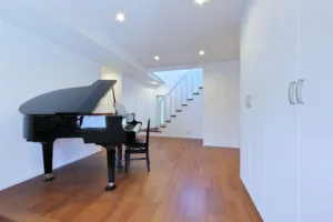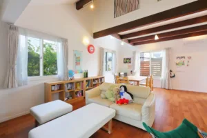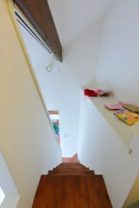 この家に以前お住まいの方が芸術家だったため「1Fの1/3が賃貸住宅、1/3が玄関ホール、1/3がスタジオ」という個性的な家を、家族4人が暮らしやすい4LDK+サービスルーム+ロフトへ間取り変更。