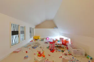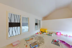ロフトの2/3は収納、1/3は子供の遊び場なので、収納たっぷり。主寝室の奥のサービスルームは、WICや書斎として多目的に使えます。キッチンやリビングから、ロフトで遊ぶお子さんの気配を感じながら、のびのび子育てできる楽しい家になりました。